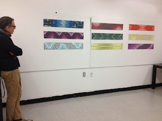 Through the semester my professor, Paul Corio, taught us in depth color theory and exposed us to the many ways that patterns are constructed. (Sanford Wurmfeld,his teacher's retrospective, that I blogged about, was a culmination of all the color theory I had been learning all semester). We explored tessellating patterns in black in white to begin, slowly he introduced specific color guidelines; our leash was loosened as the semester progressed and we were more knowledgeable about color. Understanding the power of color, like how to create the illusion of transparency (above)was key. It was crucial to have all the 'words' of color theory, tools in our tool boxes, before we were allowed to create our own vocabulary.
